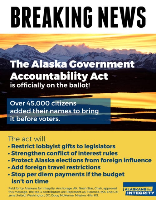 • Alaska Government Accountability Act placed on the November 2018 ballot