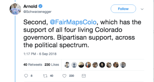 Former California Gov. Arnold Schwarzenegger announces support for anti-gerrymandering initiatives including Amendments Y and Z on Twitter