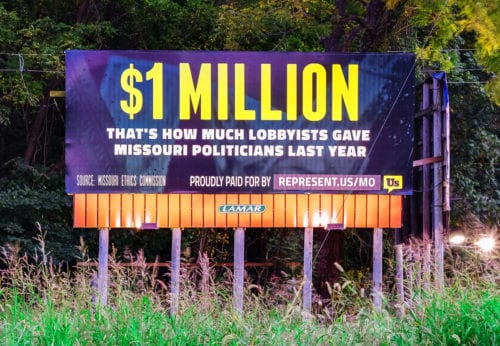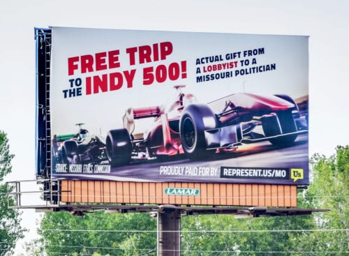 Represent Missouri takes out billboards on highways 50, 54, and 63, calling out ridiculous gifts from lobbyists to legislators