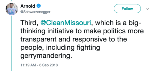 The Missouri Times: Schwarzenegger targets gerrymandering for termination, pushes for Clean Missouri support